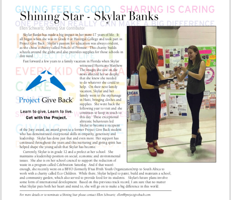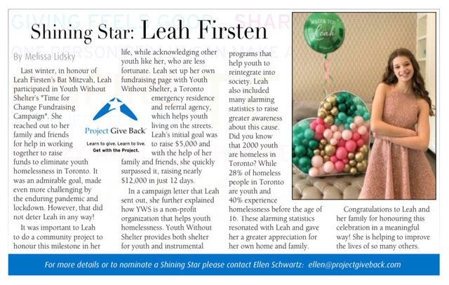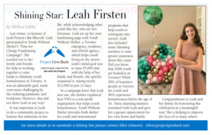 Project Give Back has partnered with Best Version Media and Neighbours Magazine to highlight young leaders in the community. What’s with kids these days? Check out some of these shining stars!