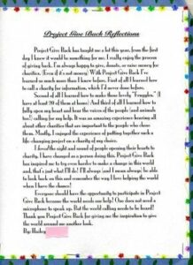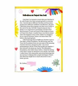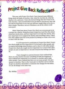 If we give children the proper tools and guidance, they can achieve the impossible. Project Give Back is a passion based program designed for elementary students to develop empathy, build character, and ignite community minded citizens.